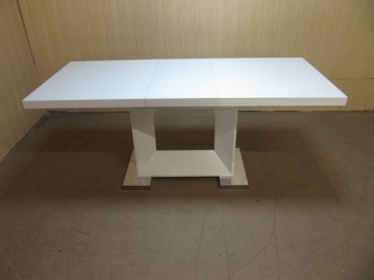stalas baltas gliancinis(hokhglans) paviršius, geras prailginimo mechanizmas, koja kombinuota su metalu.